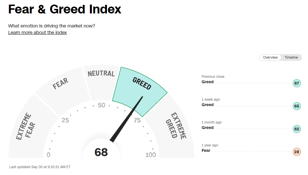 It’s not a perfect indicator, but I like to use the CNN “Fear & Greed” Index just to quickly quantify where the markets are.