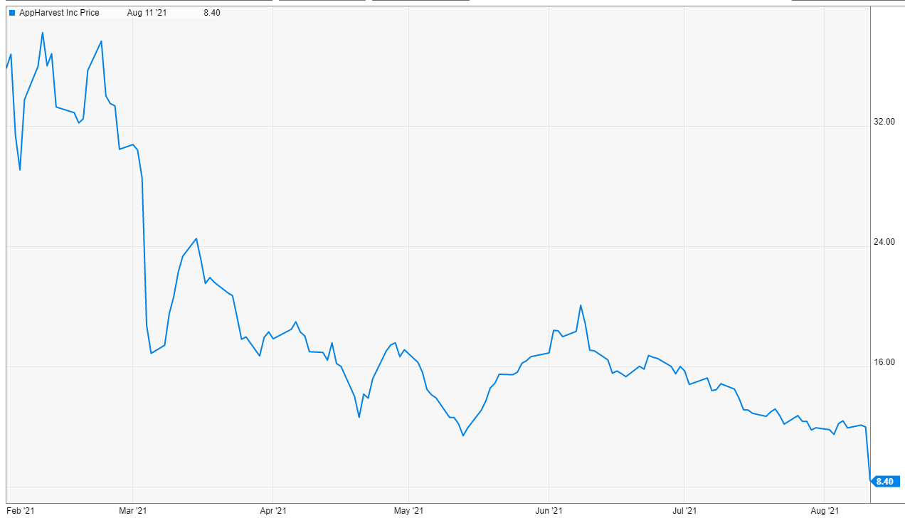 AppHarvest (APPH) is more of a promotion than a real company, so I almost didn’t include it in this post, but the company cut their 2021 revenue guide by more than half (from ~$22.5m to $8m) while increasing their projected losses by 50% (from ~$50m of losses to ~$72.5m). The stock has held in surprisingly well; I guess because they reaffirmed their 2025 estimates. Good luck with that.