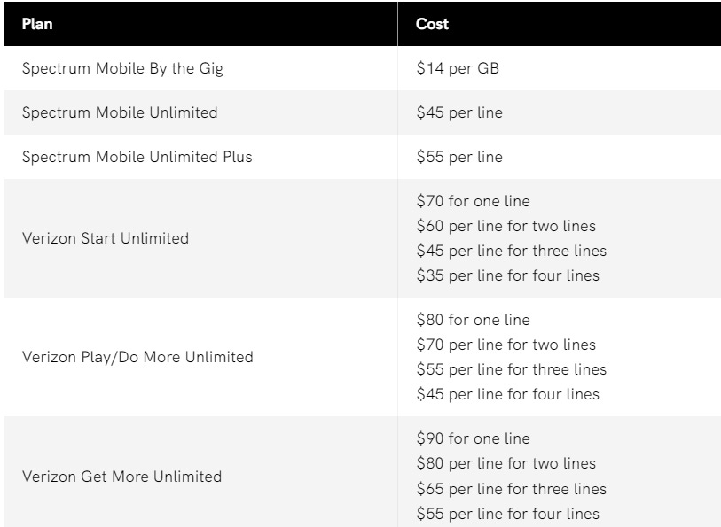 On the other side of the ledger, cable’s wireless business is accelerating massively. In Q4’21, Verizon had “558k phone net additions.” Compare that to Comcast’s 312k wireless line net additions and CHTR’s 380k additions, and you can see cable’s already taking a bunch of share in wireless…. but if you then adjust for the fact Comcast and CHTR are really only selling in the ~33% of the country where they have broadband service, you can quickly see that CHTR and Comcast’s wireless businesses are growing much, much faster than the big wireless players. The reason is simple: Charter and Comcasts’ MVNO run on Verizon’s networks plus have lots of hotspots, and their prices are way cheaper than Verizon. So if you sign up for a cable mobile player, you get a slightly better network for significantly lower cost. With math like that, it’s no wonder they’re taking so much share! (Charter versus Verizon price below from here)