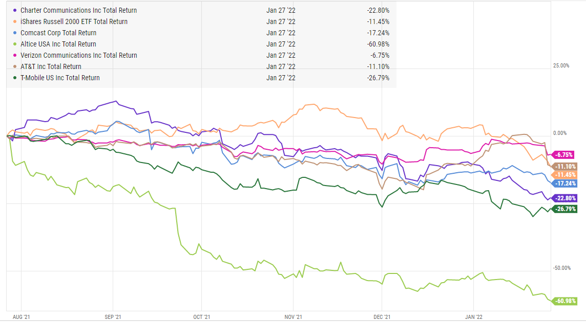 So why did I chose cable for this deep dive? Long time readers will know I’m an unabashed cable bull. Over the past six months, cable and telecom stocks have been slaughtered across the board.
