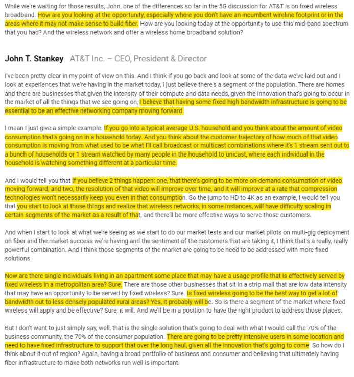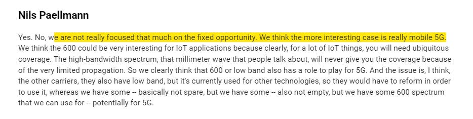 And here’s their CFO discussing how unexciting fixed wireless is for 5G given most people already have good broadband.
