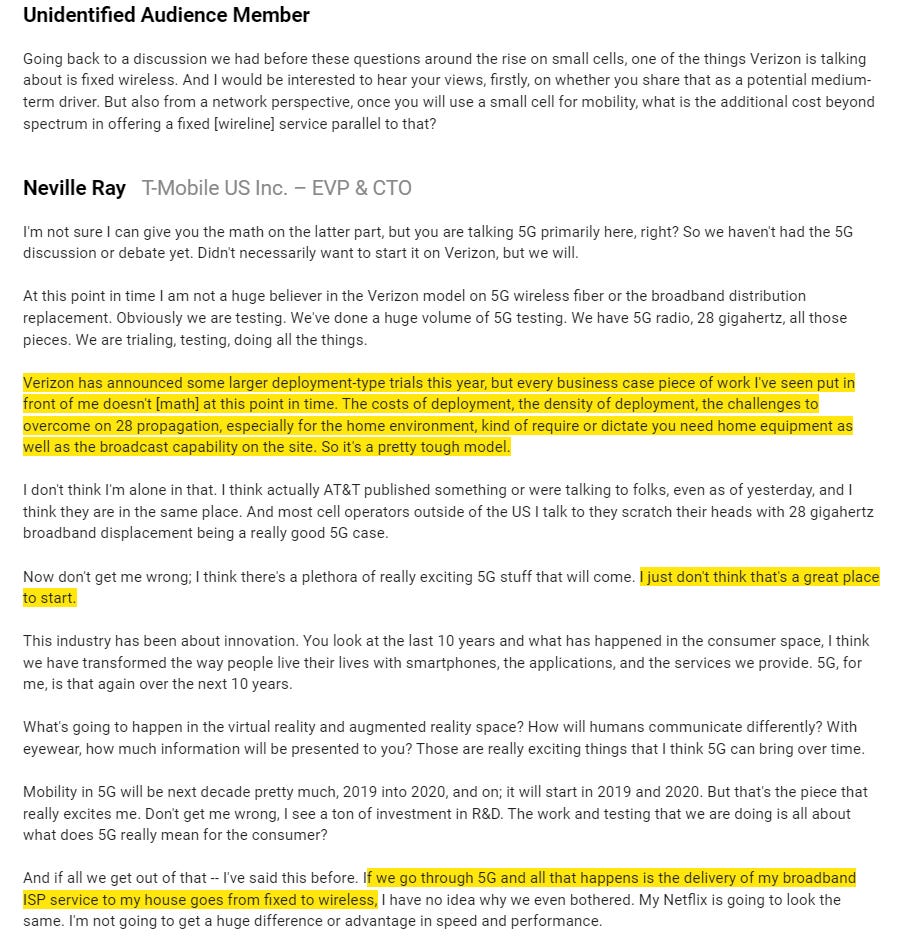 Here’s TMUS saying they’re not focused on fixed wireless as a 5G product later in 2017: