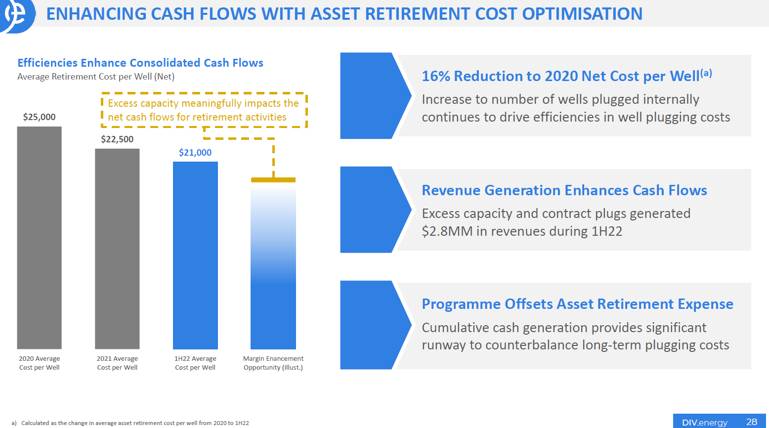 DEC claims a cost advantage in handling asset retirement obligations (ARO). Why? DEC would say because they are so focused on asset retirement, and have such scale and focus in their target region, they can retire wells for less than other operators who don’t have the same focus / scale. Bears would say that’s crazy; DEC’s ARO costs can’t be materially lower than peers, and a lot of the “bargain” DEC claims to get in buying old assets is actually DEC underestimating how much ARO will cost them.