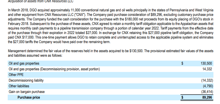 In contrast, DEC’s H1’18 report suggests that the ARO associated with the assets will be ~$15m, and DEC books a ~$36m gain on bargain purchase