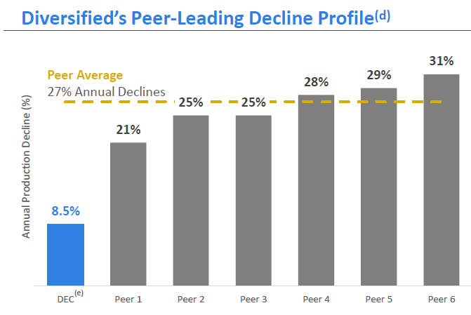Speaking of declines, because Diversified is generally buying older wells, their declining profile is well below many of their peers.