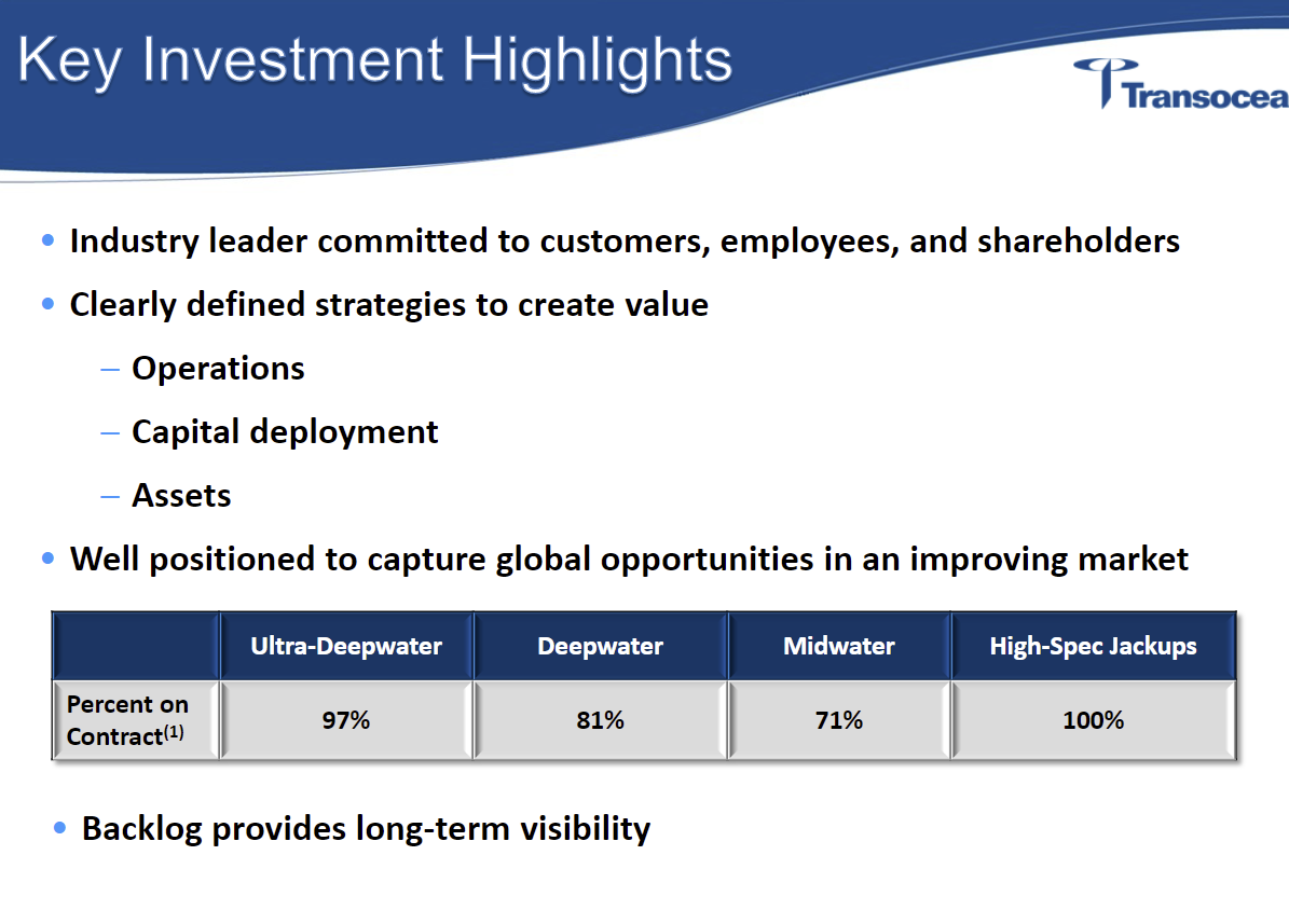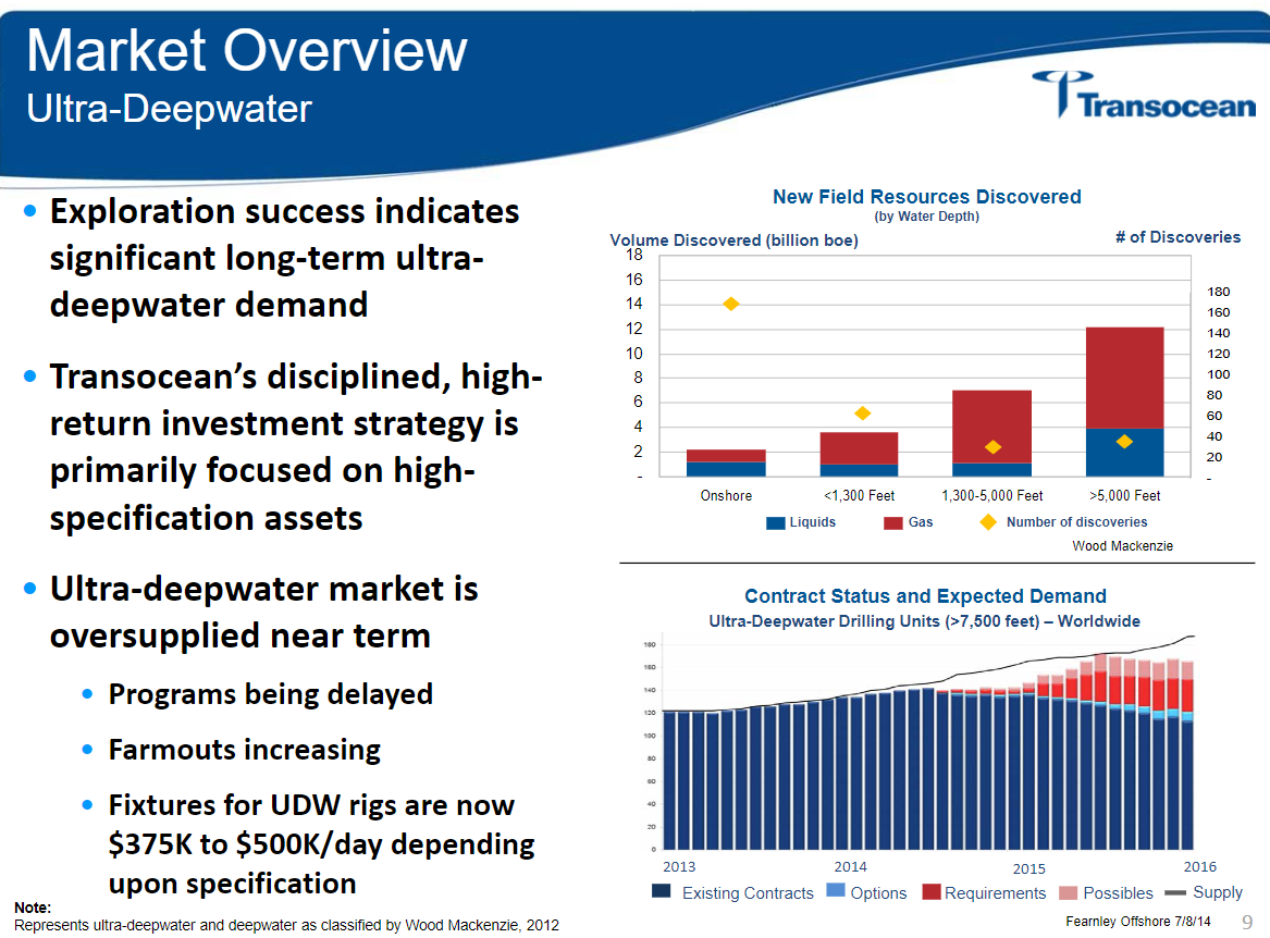 I think I can show this best by showing the evolution of Transocean’s (RIG) investor slides from 2013-2016. Remember, Transocean is basically the only offshore player that didn’t go bankrupt over the past 10 years. This exercise of going through the past decade of investor decks for the industry was made difficult because most of the industry has gone bankrupt, and in general the post-reorg companies have wiped any presentations they had pre-bankruptcy from their investor sites. Fortunately, Transocean’s old decks remain on their website in all their bullish glory.
