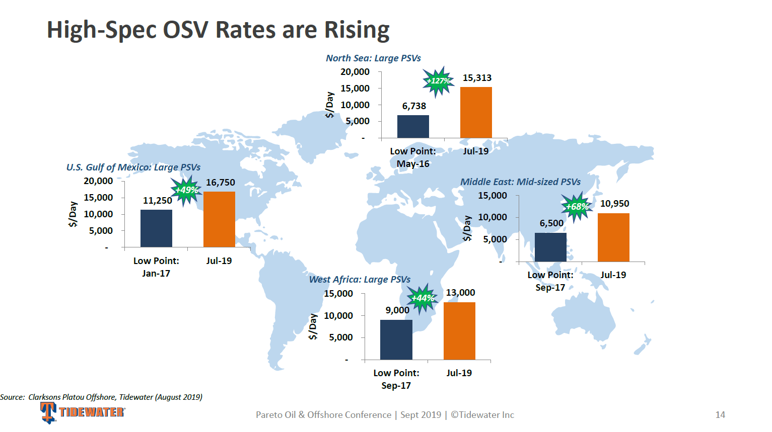 History for TDW would again repeat in 2019. The three slides below are from TDW’s September 2019 deck, but you’d be forgiven for thinking they’re from TDW’s current investor decks. The arguments are the exact same to the ones they (and I) are making today: supply shortage and rising demand leading to increased utilization and rates.