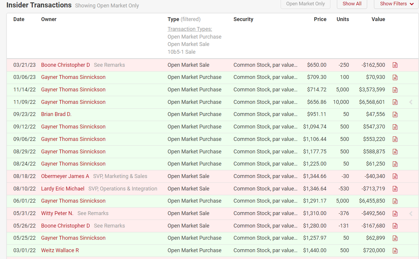 That repurchase trend is obviously an interesting signal… but perhaps more interesting to me is what the board is doing. Tom Gayner is the CEO of Markel and has served on CABO’s board since they were spun off from Graham Holdings in 2015 (he’s also served on Graham holdings board since 2007, so he’s been involved with Cable One in some type of board capacity for over 15 years). In 2022, Tom started buying Cable One stock on the open market. Anytime a respected value investor starts buying shares of a company where they sit on the board, it’s interesting…. but what’s more interesting here is that this is the first time Mr. Gayner has ever bought Cable One shares on the open market. After ~15 years of involvement, Gayner decided that now was the time to buy stock! That’s great patience on his end, and an interesting signal for us!