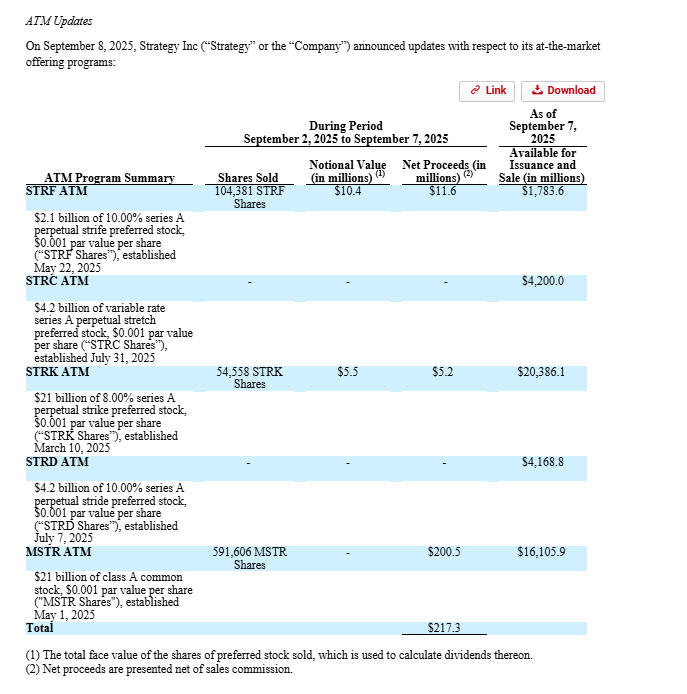 … and the market seems to be looking at their strategy with increasing skepticism; most of their preferreds are trading below par (in the case of STRD, well below par), and, despite the drop in MSTR’s mNAV, MSTR has been forced to shift most of their capital raise to their ATM program in order to continue to buy bitcoin.