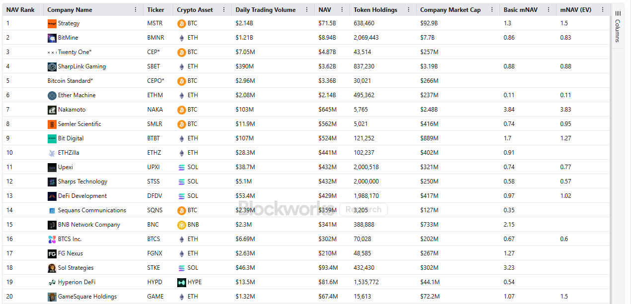 Even given that history of crypto speed running financial history and my noted skepticism of Digital Asset Treasury (DAT) companies (see part 1 and part 2 of my DAT series for more background), I’ve been surprised by how quickly DATs have mirrored the history of closed end funds. When I was writing my series ~a month ago, MSTR was trading for ~2x mNAV, and every company that announced a DAT deal with any crypto was seeing their stock price skyrocket.