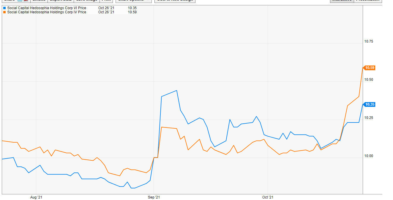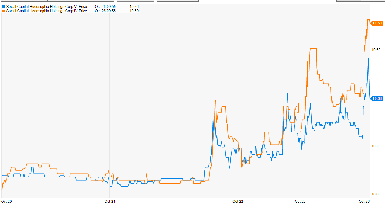 DNAA / DNAB / DNAC / DNAD: Ok, I’m already cheating. That’s four SPAC in one number! But these are all related; these are Chamath’s four healthcare / biotech SPACs. Each will target a different vertical (DNAA is CNS and PNS, DNAB is oncology, DNAC is the “organ space” (intrinsic diseases of the heart, kidney, etc.), and DNAC is immunology). Chamath is very controversial, but I think he’s a great marketer and he has a knack for spotting big trend. I tend to view him as a levered call option; buying into a levered call option with the downside protection of the trust / redeem structure in a SPAC is about the best trade I can think of, and with all of them trading under trust you’re not paying up to get that call option.