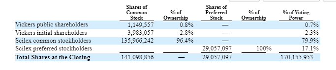 That SPAC deal closed in November 2022. As is typical with SPACs, there was a wave of redemptions. The SPAC SCLX was merging with originally had >13m publicly traded shares out (see p.7 of their 10-Q); by the time all of the redemptions are finished, the SPAC’s public shareholders own just ~1.1m shares, the SPAC sponsors own ~4m restricted shares, and SRNE owns ~136m shares, or over 96% of SCLX (table below from this 8k).
