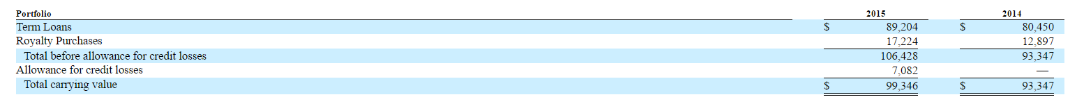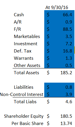 Value their ~$19m of nonaccrual loans at 50% of face, and value their ~$70m of performing loans and royalty purchases at 95% of face to account for future write offs