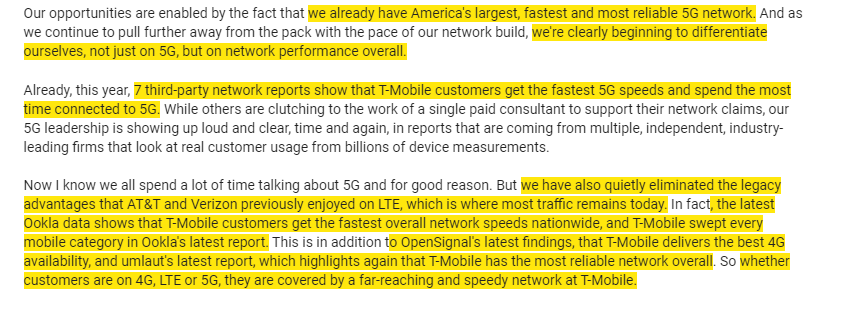 TMUS appears to be lapping VZ and T; their network is in way better position, and their growth is much stronger. Between TMUS’s network and competition from CHTR / CMCSA, what do VZ and T do?