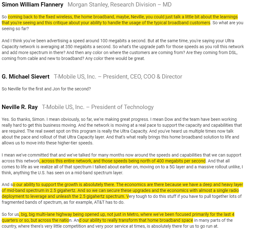 On top of fiber, TMUS is making big proclamations about their fixed wireless offering. Any threat to cable there?