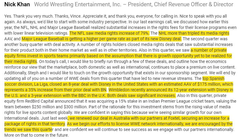 WWE gives an overview of current rights market (it’s hot!). (Here’s a bonus WWE note showing how big the reopening demand for live is).