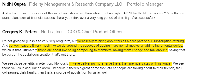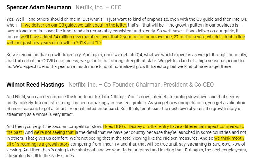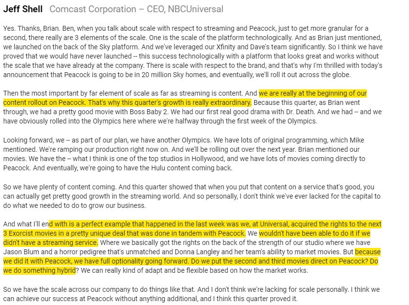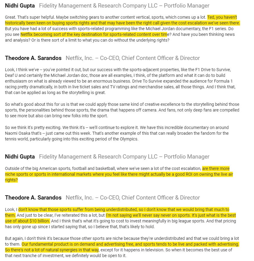 Compare the CMCSA / Olympics quote above to Netflix’s continued avoidance of sports rights
