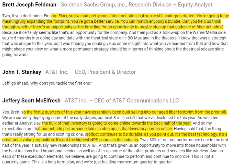 Anyway, those are my three big takeaways / things I’m still noodling on. But I’ve got plenty of other things I’m thinking about; I’ve included those questions (plus clips from earnings calls backing them up) below; I’ve dived them into two buckets (cable / telecom is the first set of questions; media is the second); I’m hoping we’ll address them all on the space, but there will also be plenty of room for other questions if you want join / ask questions! See you tonight!