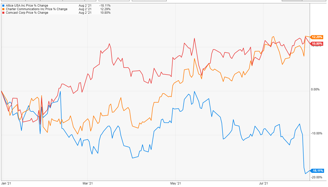 Why is Altice underperforming CHTR and CMCSA (both YTD and since IPO)? Is it because of the quotes below, is it because I jinxed them, or some combination of the two? And, if it’s the quotes below, why is ATUS seeing such different trends?