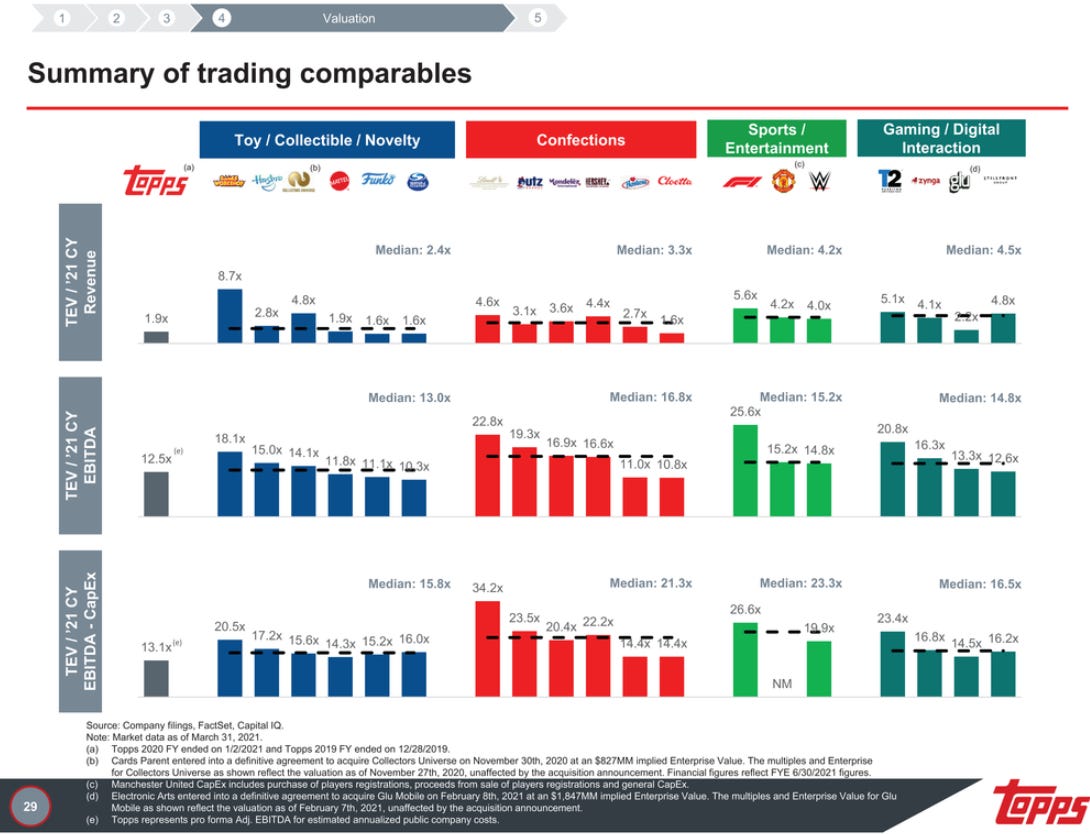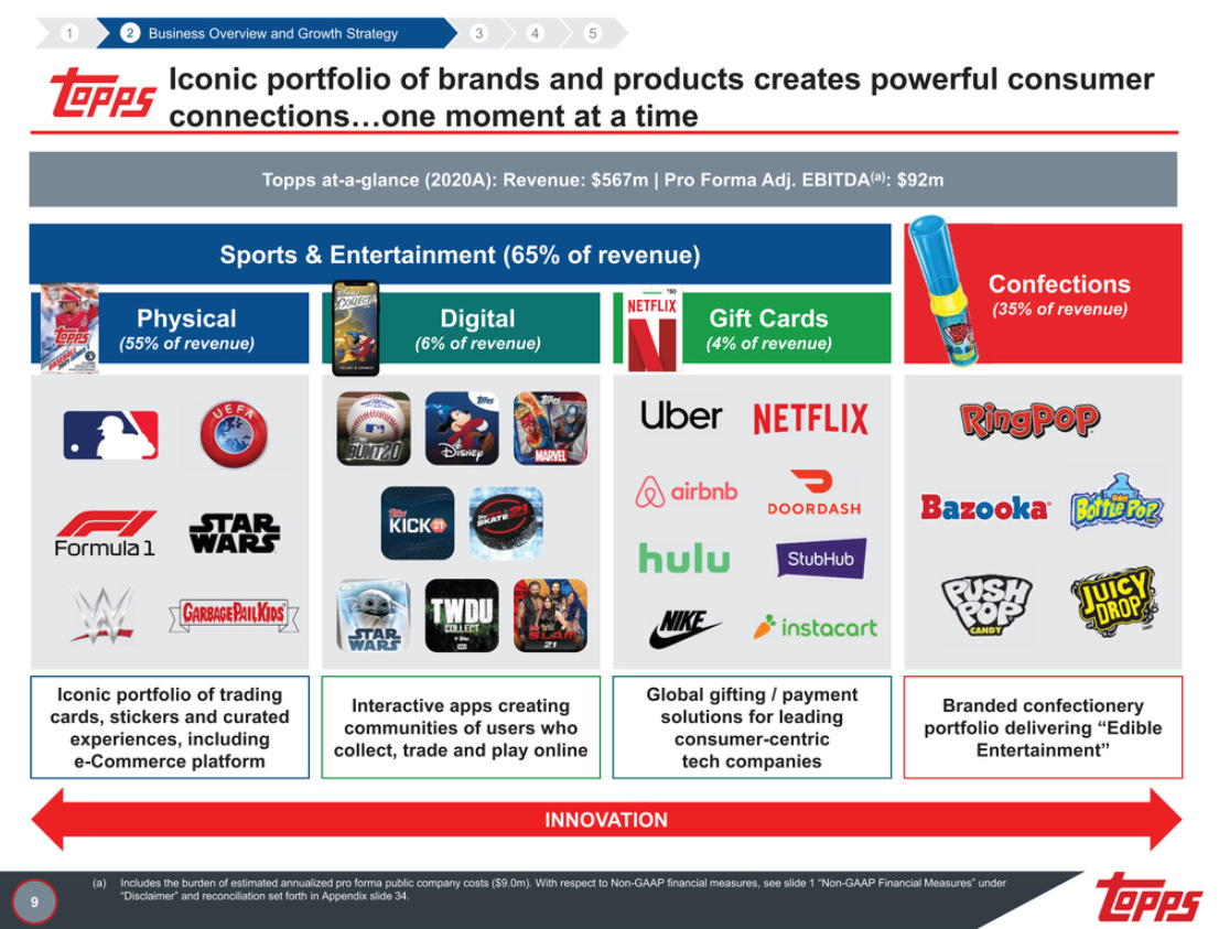 It’s also crazy to me that Topps found out about losing the MLB on Thursday (August 19th). The shareholder’s vote for the SPAC merger was set for August 25, and the deal would have closed soon after. What would have happened if Topps had been “blindsided” by this news next week (right after the shareholder vote)? The merger would have already closed. I’d bet the stock would have been down >50%, and lawsuits would have flow. I wonder if there was some game theory from Fanatics (who won the MLB deal) on “blindsiding” Topps with the news now instead of after the SPAC deal closed; if the news had broke a week from now, Topps would have had a bigger war chest to play with to try to tempt MLB to stick with them (the deal would have put $50m in cash on Topps balance sheet; on top of that, Topps would have had a pretty highly priced public equity they could use to try to convince MLB to stick with them). By breaking the news now, Topps is blindsided with the news, loses out on their SPAC deal, and is stuck with a big private equity owner who doesn’t want to be there (the majority of the MUDS deal proceeds were going to cashing out the majority Topps’ private equity shareholder’s stake).