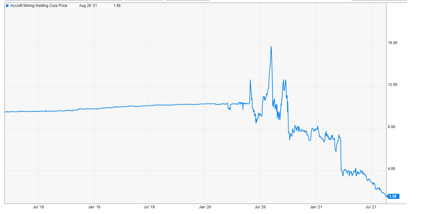 The interesting thing here is that MUDS wasn’t Murdick’s first SPAC; it was their second. Their first SPAC went public in early 2018, announced a deal to merge with Hycroft in early 2020, and completed that deal in June 2020. That deal…. hasn’t exactly lit the world on fire.