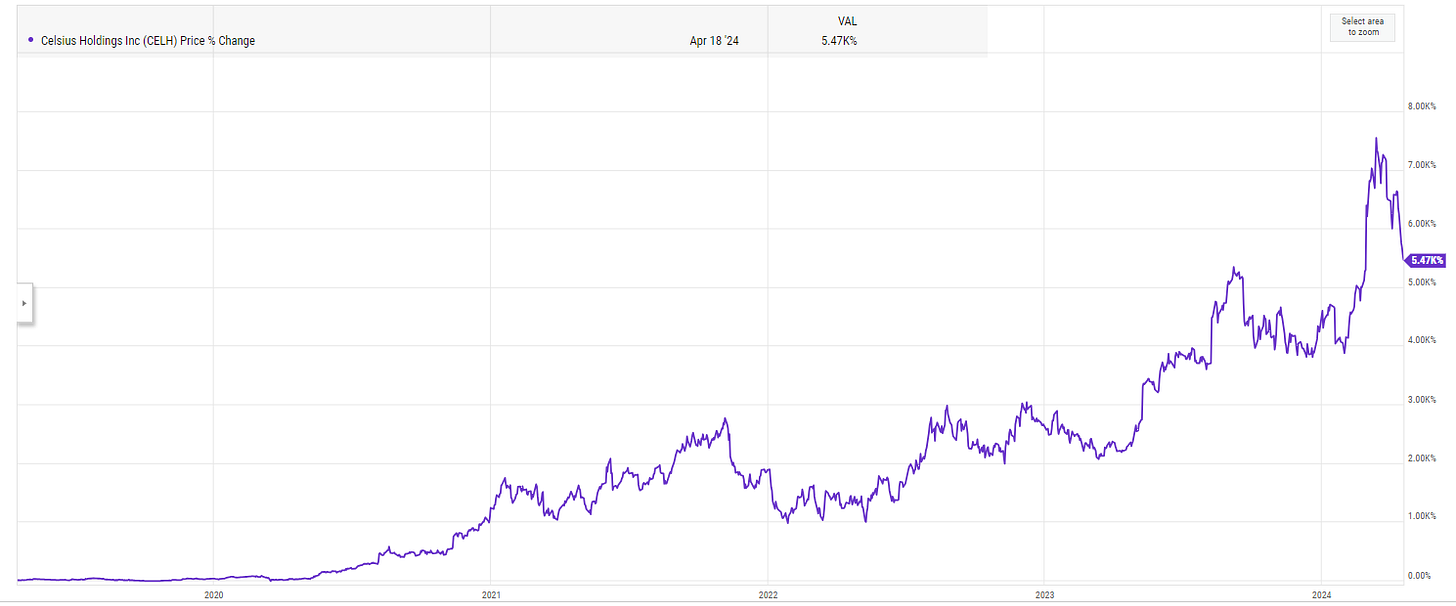 Because two of the greatest compounders of the past ~20 years have been Monster (MNST) and Celsius (CELH), and I missed both of them. It’s a sin that’s borderline unforgivable as, given my love of energy drinks, both were literally right in my wheelhouse.