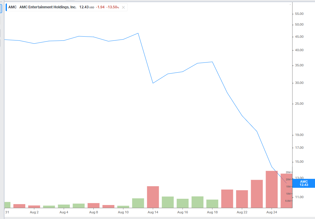 AMC’s stock was absolutely hammered as the exchange closed, with the stock trading down ~80% through the exchange….