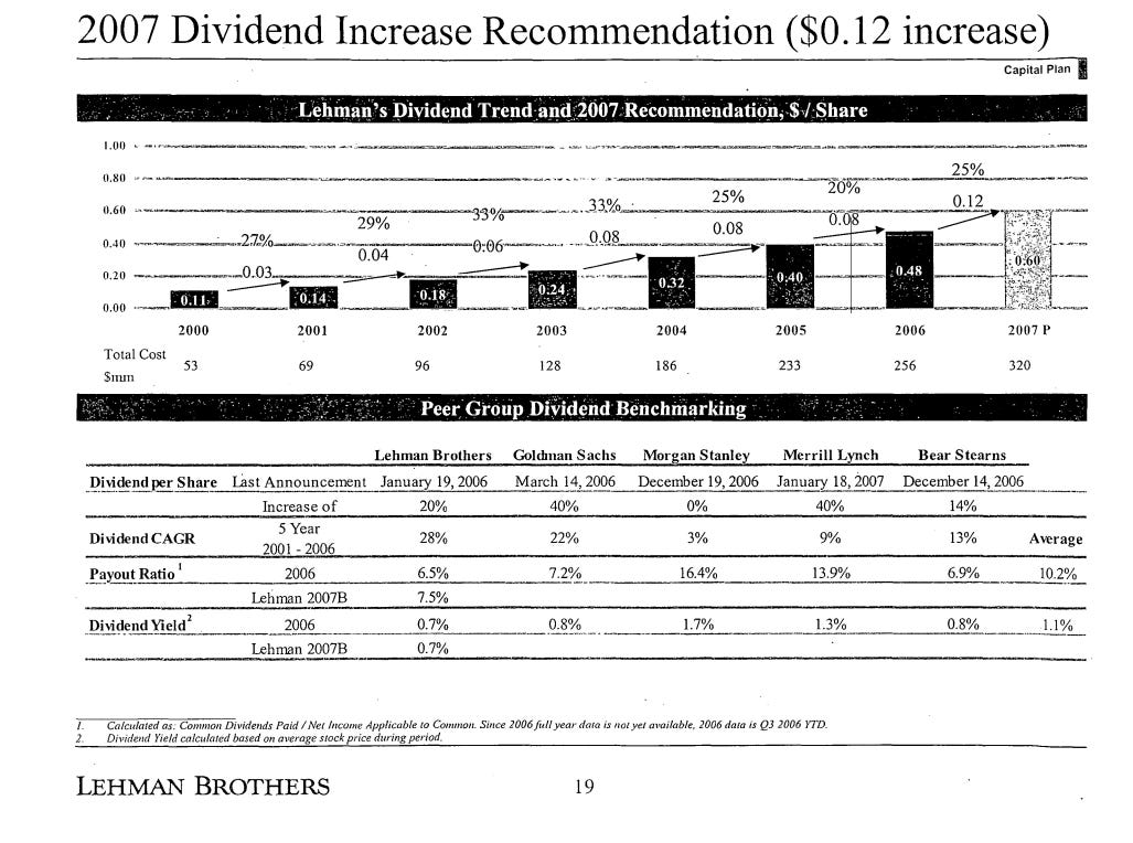 PS- I was googling around to think about this article and found Lehman’s financial plan for 2007 that their board discussed. It’s really interesting to flip through that with the benefit of hindsight. Lehman looked like the perfect compounder stock; ROE consistently over 20%, dividends and share buybacks increasing, etc. Within two years, the equity would be wiped out and the company would cease to exist. Crazy.