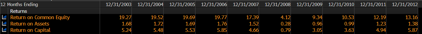 First, I think those points very much fit with Buffett’s style. Buffett was looking for large cap, liquid stocks he could buy and hold for the long term. An industry that has been around for hundreds of years (banking) and a franchise that had a proven ability to generate returns on equity well in excess of its cost of equity certainly fit that investing model, and not having to worry about unexpected losses / downcycles even in the worst of markets cuts off some of the left tail / go to zero risk.