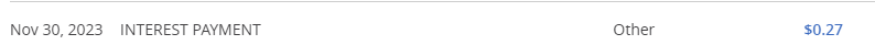 I didn’t include our account balance for obvious reasons, but I don’t think it’s crazy to assume my wife and I’s combined account has more that $1k in it. If it had just $1k, that interest payment would come out to ~0.3% annualized. Not 3%; 0.3%. And, again, it’s not crazy to think my wife and I’s combined account has more than $1k in it, so the interest rate is substantially lower.