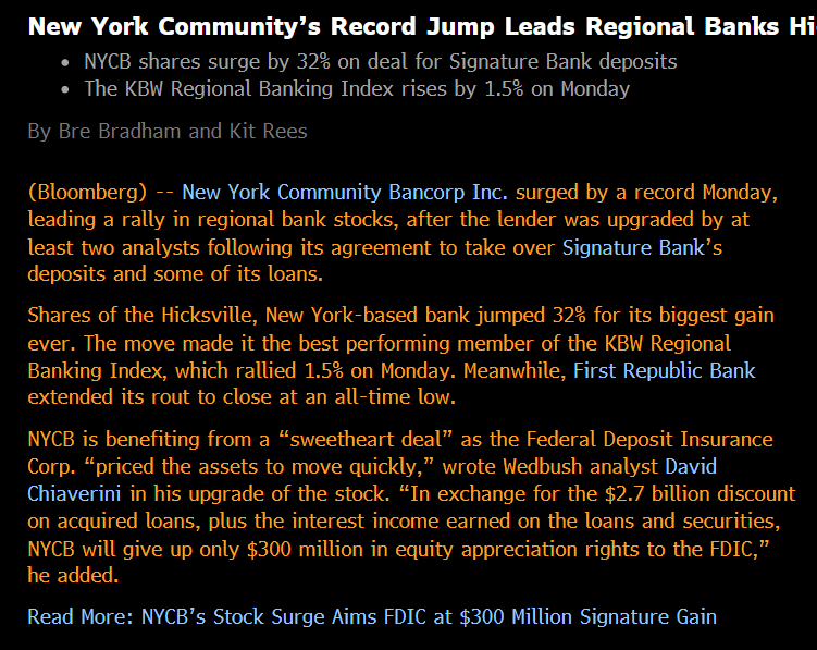 NYCB’s deal to buy Signature actually happened a few days before another “dream” deal: FCNCA’s deal to buy Silicon Valley out of bankruptcy.