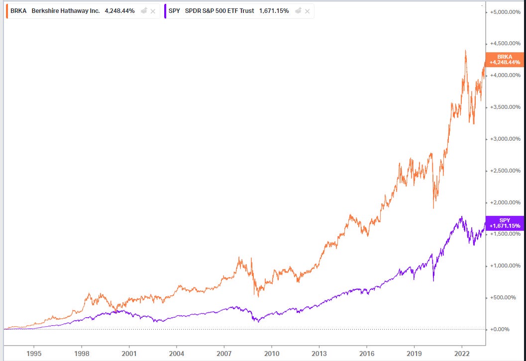 Don’t get me wrong; I’d love for any company I’m invested in to follow Buffett’s principles or produce returns half as good as Berkshire’s. I mean, who wouldn’t want this outperformance: