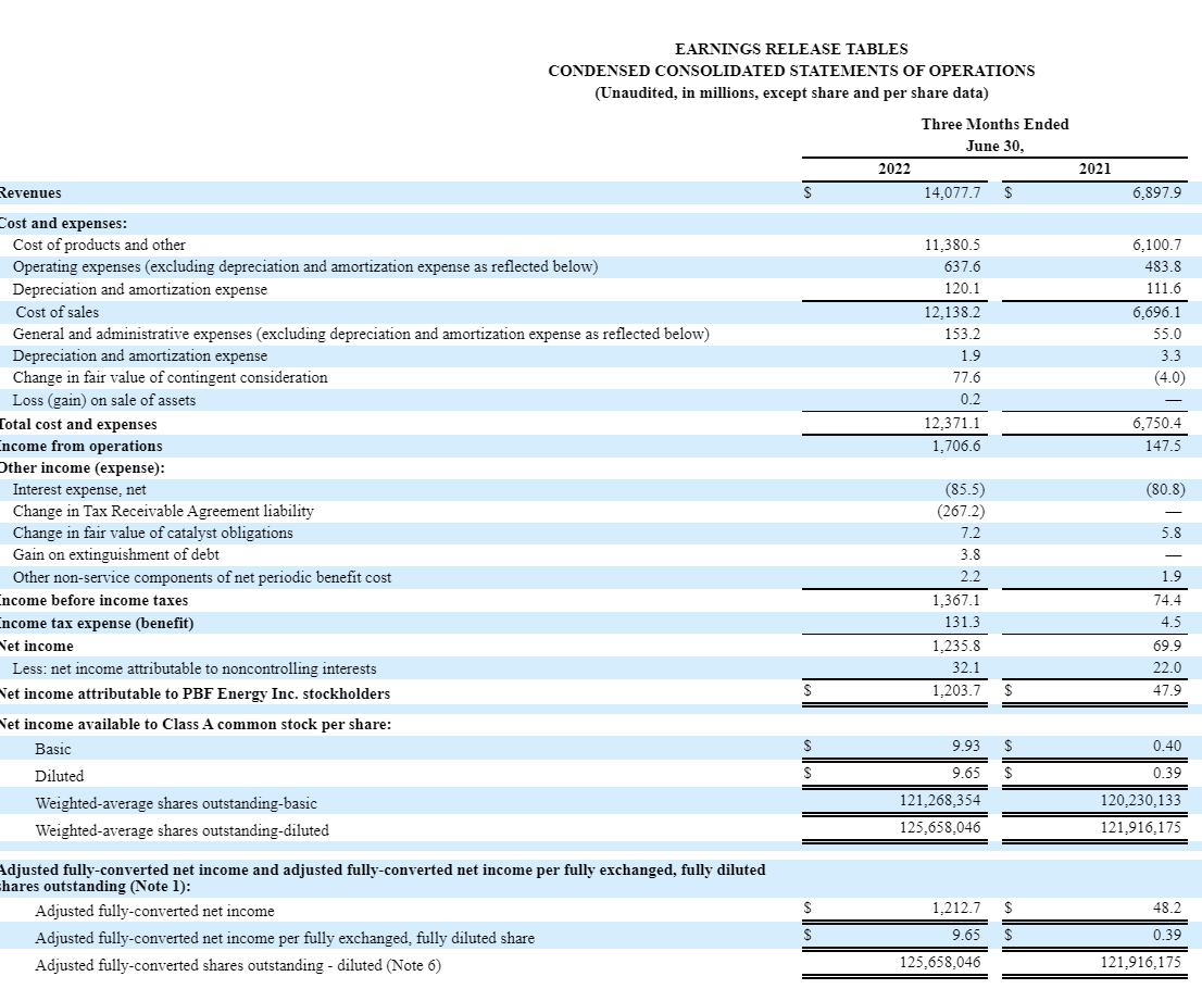 Normally when you see a company print ~a third of their market cap in earnings in one quarter, it happens because they had some massive gain on sale or one time item. That was not the case for PBF; margins just went so crazy that they literally just minted a third of their market cap. In fact, if anything a change in their tax receivable held net income down more than it otherwise would have.