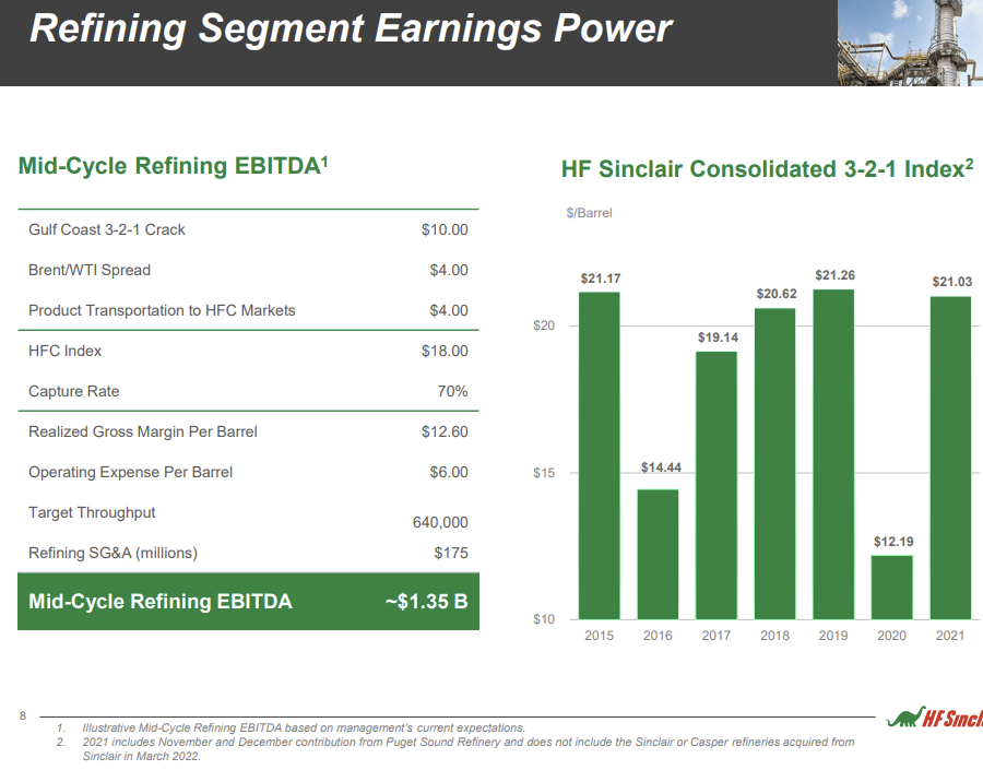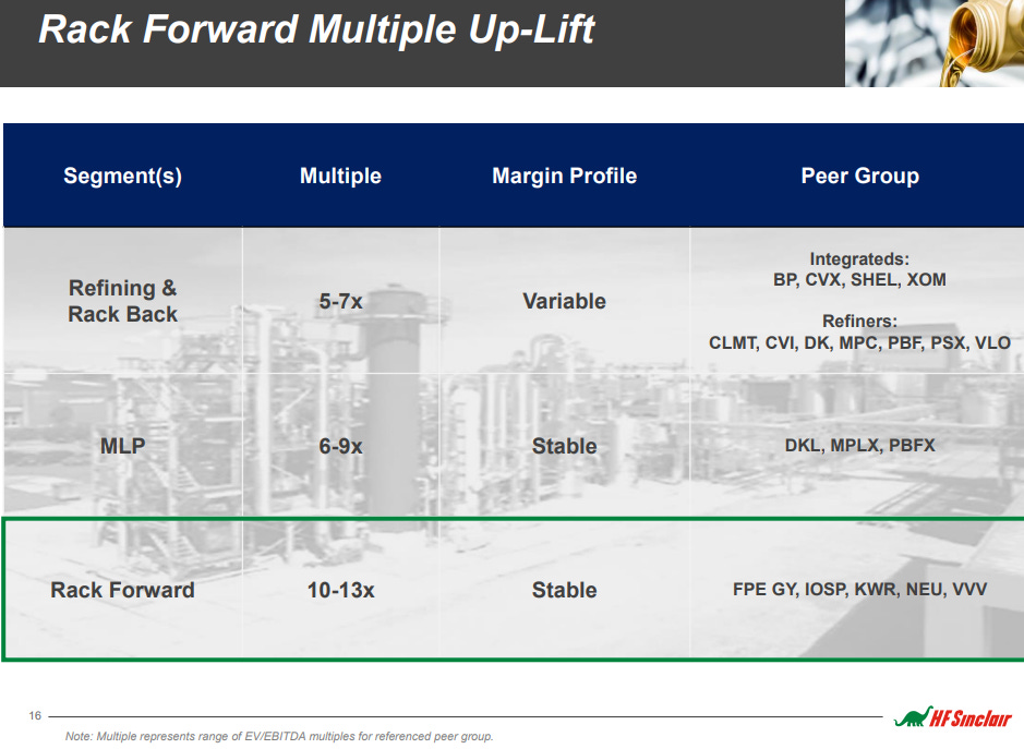 The companies seem to agree with this valuation; HF Sinclair (which now trades under the awesome ticker DINO) puts the slide below in their investor decks.