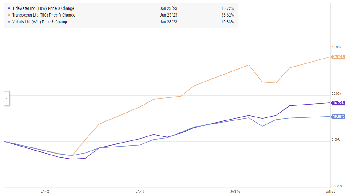 It’s early, but so far those posts have proved very fortuitously timed. Last weekend the WSJ had an article “the offshore oil business is gushing again” which covered many of the points highlighted in my series. It’s always nice to beat a major publication to a story…. but it’s even nicer to get a set of articles out right before a major move in a sector, and the offshore space has been on absolute fire year to date / since those articles and pods started coming out.