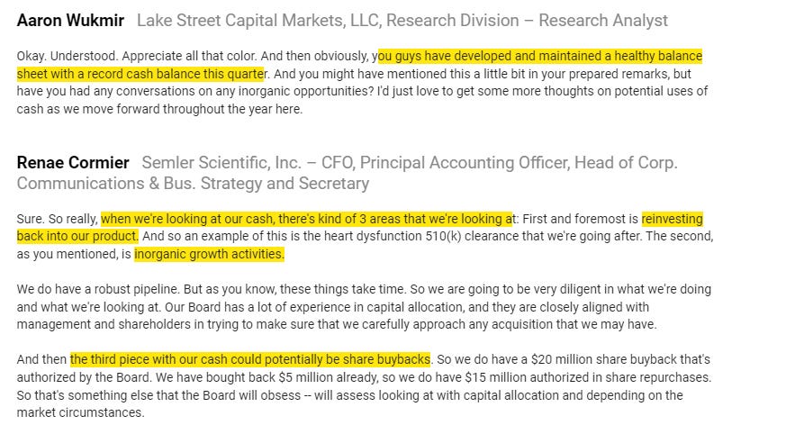 I think Semler might be a bit unique as well because they are a microcap (approximately $200MM market cap) which means that their shareholder base should be uniquely concentrated with retail investors.