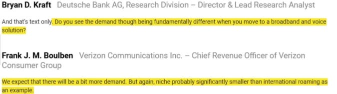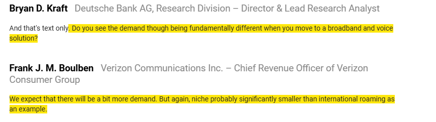 If you believe my math that there are 3.5 competitors in the market, on the same day you had 2.5 of them (Verizon and T-Mobile plus both of the largest cable players!) touting / fighting over their satellite capabilities and marketing claims.