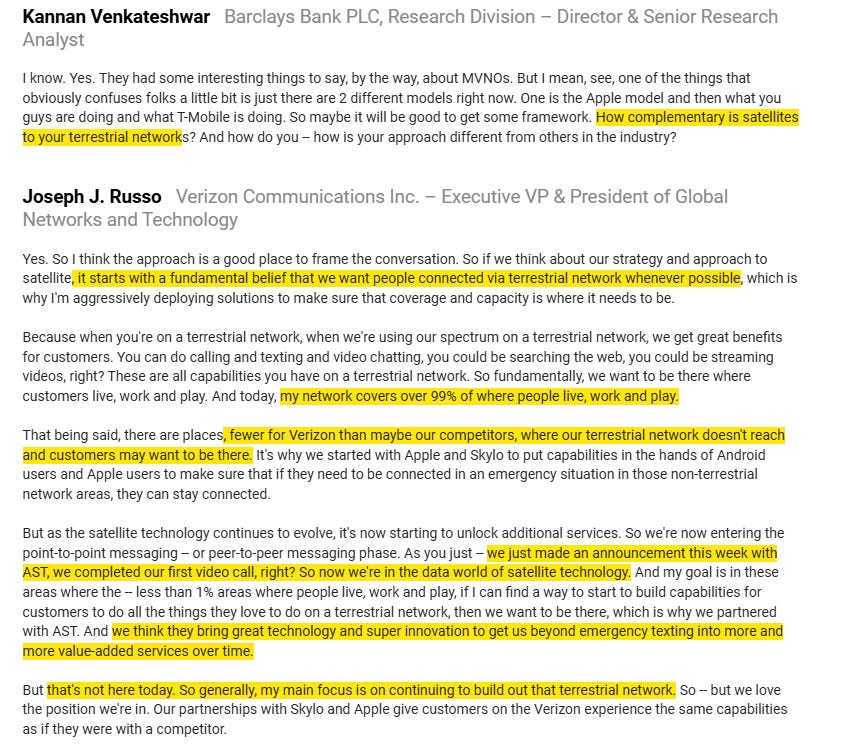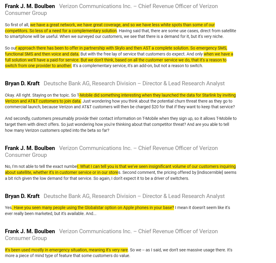 I included a few quotes from the telecom operators on satellite coverage above; I found several others (from Verizon specifically) in recent conferences, but didn’t want to include them in the article because it would make the article just way too long. Here they are in case you’re interested: