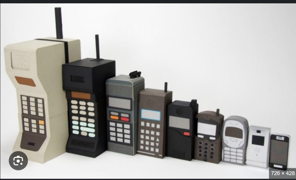 Satellite phones is obviously a crazy broad term; I’m not talking about companies that are making phones that have satellite service (an image of the big brick phone that was around in the 90s pops into my head; something like the phone on the far left below):