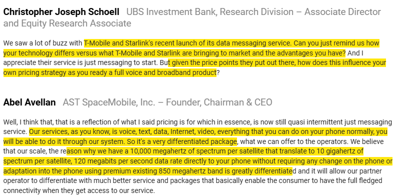 But here’s where things get kind of interesting: the mobile operators words don’t seem to be fully matching their actions. Each of them are downplaying the potential of satellite… but both of them have written big checks into ASTS: ~$100m for Verizon, and approaching $50m for AT&T. Now, $50-100m isn’t quite as big at Verizon and T as it is for a normal company (for example, T highlighted they’ve “invested over $140 billion into telecom infrastructure, including nearly $40 billion in mid-band spectrum” over the past five years at a recent conference)…. but those are still sizable checks that aren’t going out without major buy in across the organization!