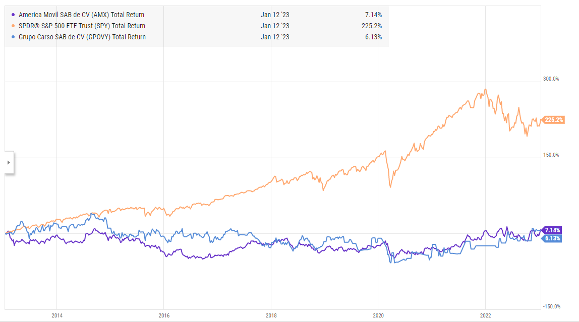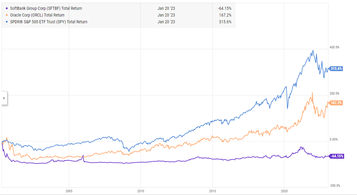 I’d argue the 2005 list in particular shows exactly what’s wrong with using the “world’s richest people indicator.” Slim and Mittal both run emerging markets companies, and they shoot up the list as the world economy is booming and emerging markets are hot. If you invest alongside them, you do well for a little time….. until we come crashing into the Great Recession and emerging markets get destroyed. If you didn’t manage to cash out before then…. whelp, you’re looking at ~two decades of underperformance (note: Mittal merger with Arcelor in ~2006; I’ve just used the total return for the combined company as I’m too lazy to go and split the returns for a weekend project!).
