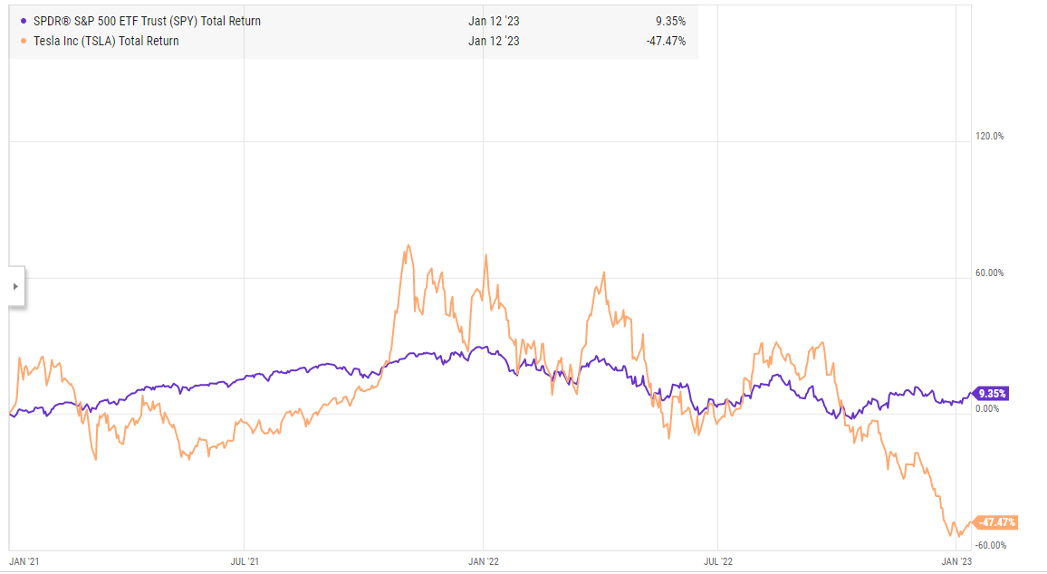Wrong! You just bought into the height of the tech bubble; depending on your exact purchase date; you’re probably down ~66% a few years later, and if you hold your stock all the way through to when Dell steals it…. I mean, takes it private in the early 2010s, you’re probably down ~75% and have massively, massively underperformed the index as the SPY >doubles over that time frame. Note: I can’t find a historical Dell chart as it went private in 2013, but here’s the yearly stock returns: