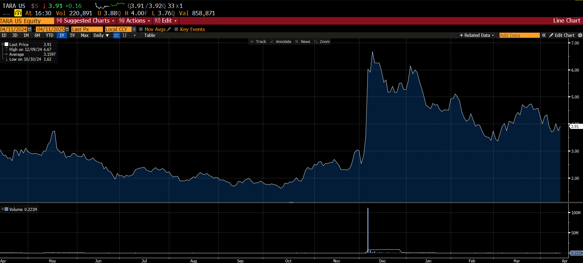 TARA had $170m in cash at the end of 2024 thanks to a massive equity offering in December. That equity offering is really interesting; their stock closed the day before the offering at <$3/share, yet TARA had a bunch of sophisticated biotech investors pump $100m into the stock at $6.25/share. Today, the stock trades for $4/share, a discount to the company’s net cash balance and obviously a huge discount to where sophisticated investors put literally hundreds (ok, hundred) of millions of dollars into the company just a few months back.