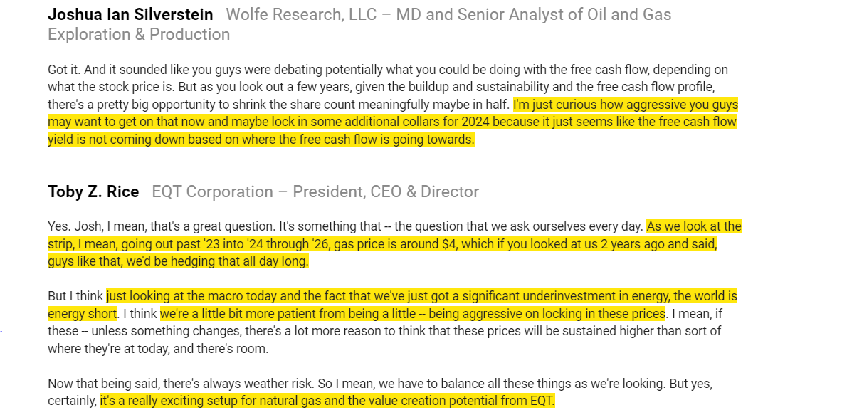 I’ll give you a fantastic example. Consider the quote below from EQT’s Q1’22 earnings call