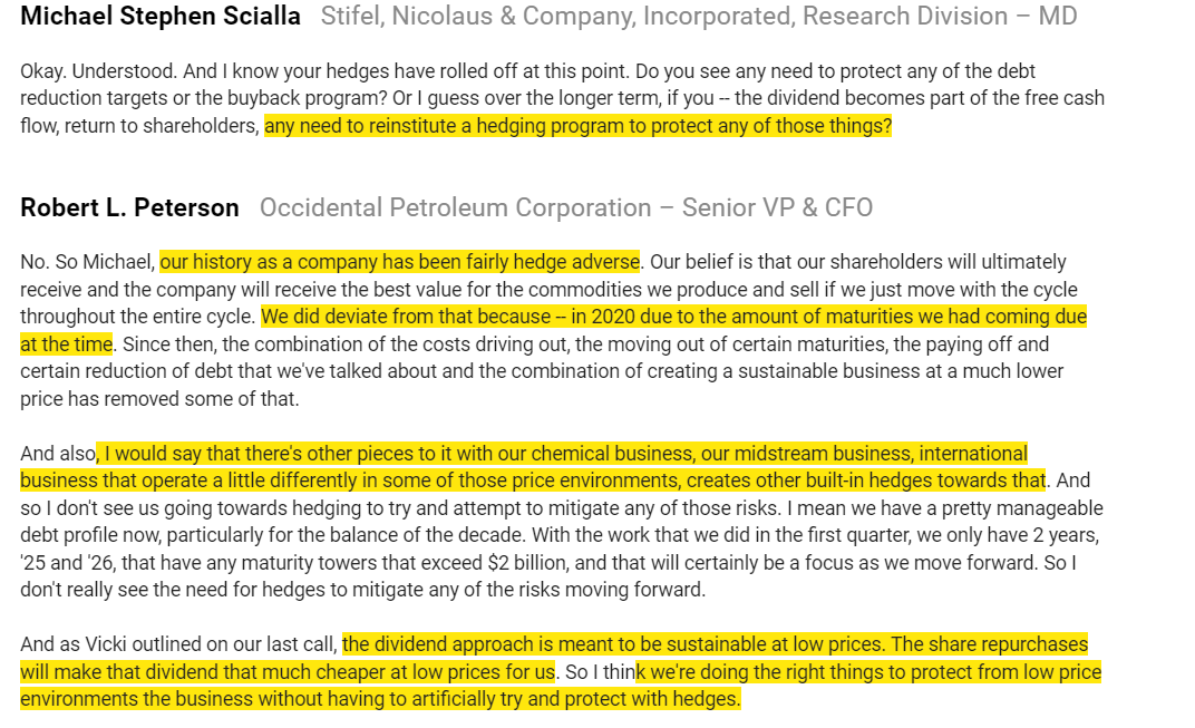 OXY broke down their hedging strategy a little more in their Q1’22 earnings call: