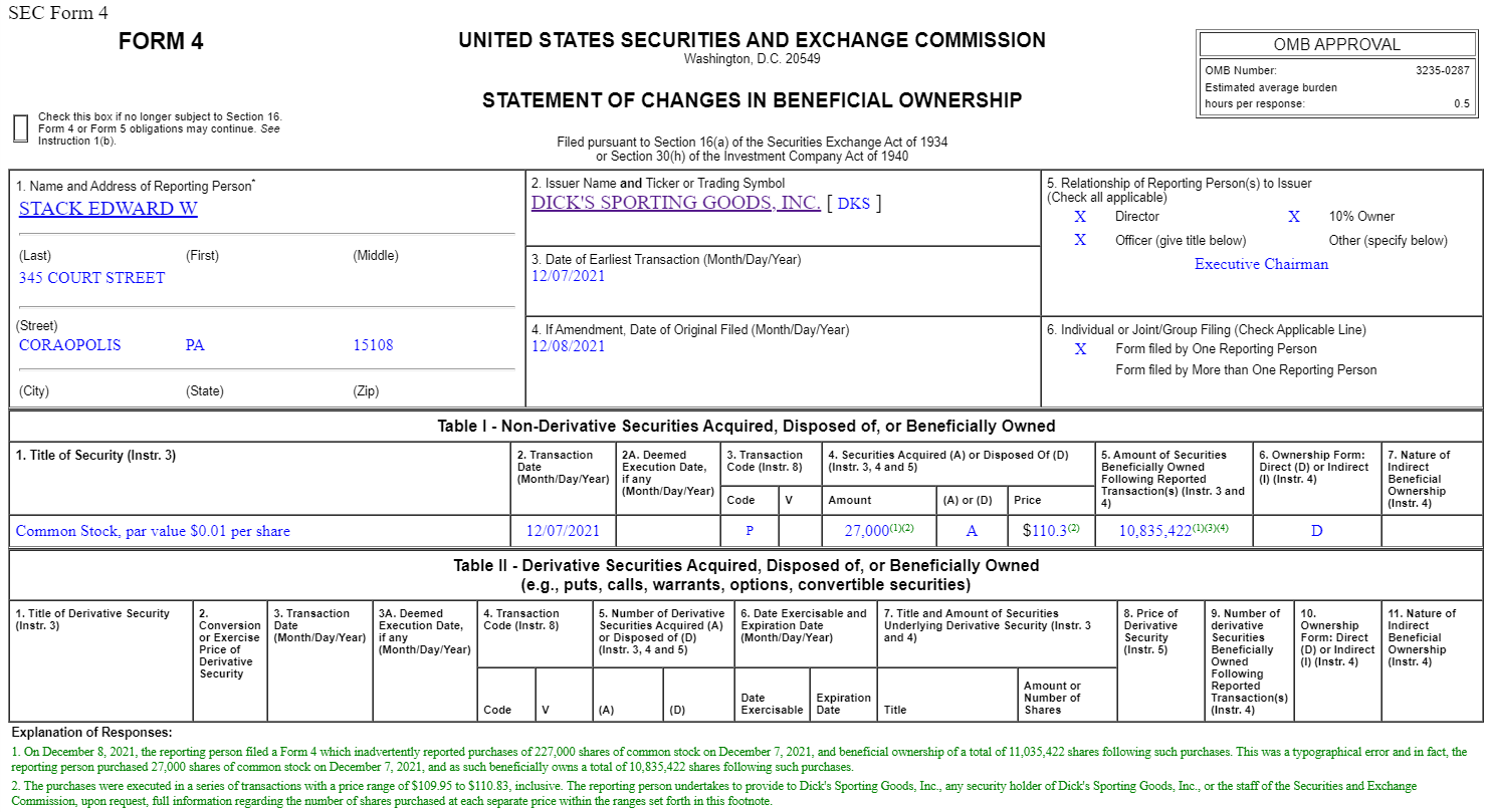 *** Update: as I was prepping to post, a few people pointed out the Dicks form 4 was mislabeled, and an updated one showed that the buy was for ~$3m, not >$25m. Still a large buy, but not quite as large as it appeared initially. I’m keeping the original text for this article and just updating because I’m a little too lazy to change it this late and because the phrasing jokes just get even better and better with the new smaller size. ***