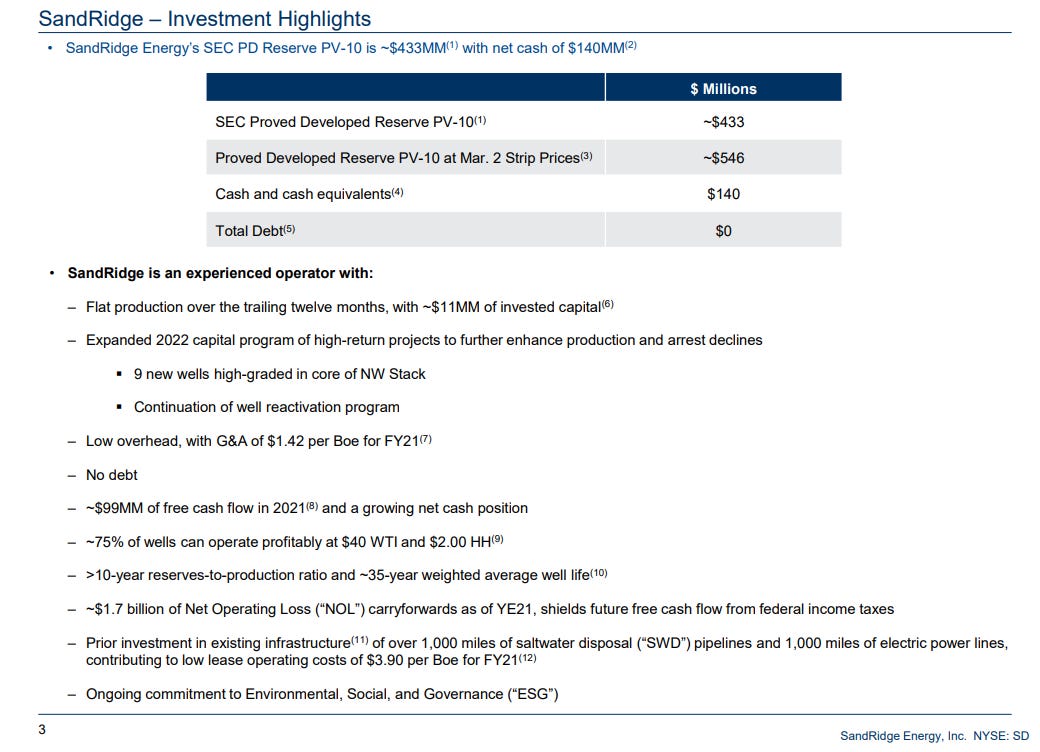In March, SD published an investor deck that noted at the then current strip their PV-10 was ~$550m.