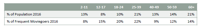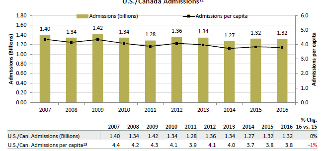 Another risk people love to talk about is young people not going to the movies as much as they used to. Younger people still over index as a % of the population attending movies. Yes, young people have always overindexed, but overall box office admissions have been relatively flat over the past few years despite the rise of streaming; so I tend to think that + young people still overindexing indicates there’s still interest in going to movies.
