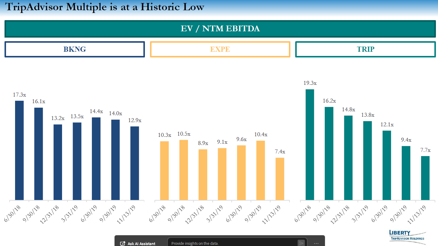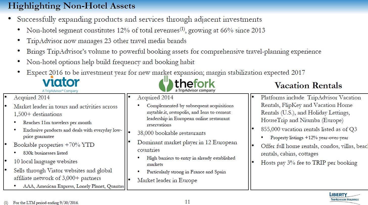 Special situation investors have been attracted to TRIP because of the potential hidden value / SOTP math for Viator and The Fork as well as the occasional rumors of a strategic process. Here’s the beginning of an SOTP pitch from the Liberty investor day all the way back in 2016!