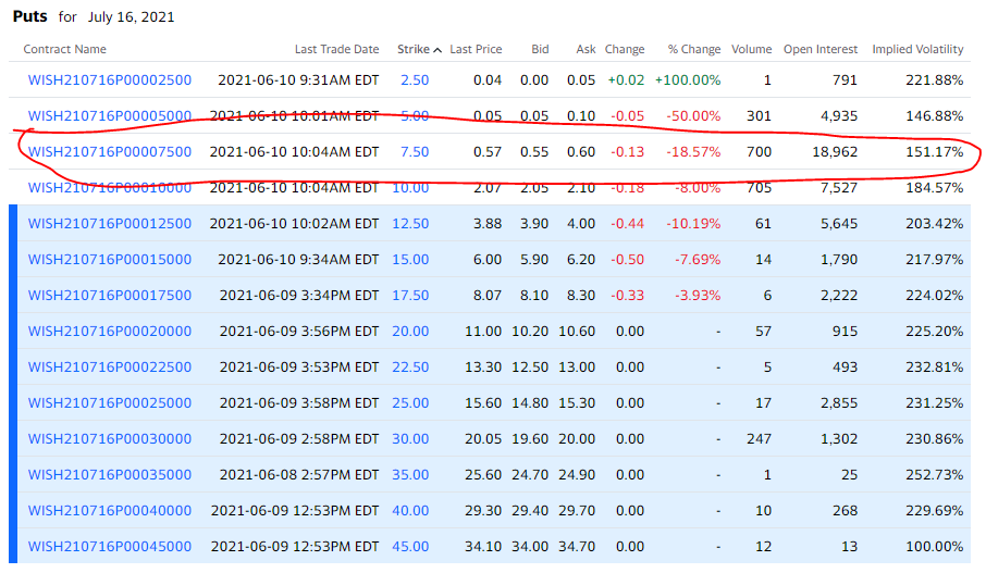 Anyway, Clover earlier in the week hit most of those boxes. I think Wish’s stock/options hits them as well on the heels of it becoming a meme.